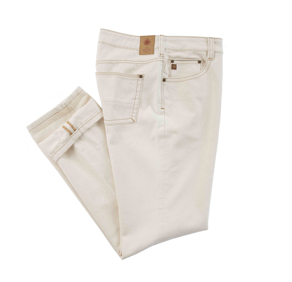 Nothing against the blue jean, but we’d argue that this beachy-bleachy version of that iconic American style is just as essential these days. This is straight-up denim—unbleached undyed, that is, and with stray flecks of brown that only add to the natural flavor. Off-white fivepocket styles like this one have become a staple for some of the world’s finest dressers. 100% cotton. Classic fit with zip fly. Machine wash. Imported.