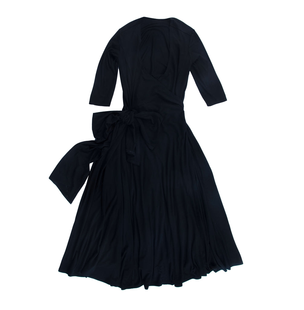 Picture Jeanne Moreau on a sunlit terrace in Montmartre. That quiet, confident glamour inspired this dress. The classic wrap silhouette flatters every curve, with a deep V neckline, half sleeves, and a self-tie waist that defines without constraining. Made from soft stretch jersey that drapes gracefully and feels as easy as it looks. A timeless piece made for moments that feel cinematic. Imported. Very limited quantity. Preorder for December 1 delivery.