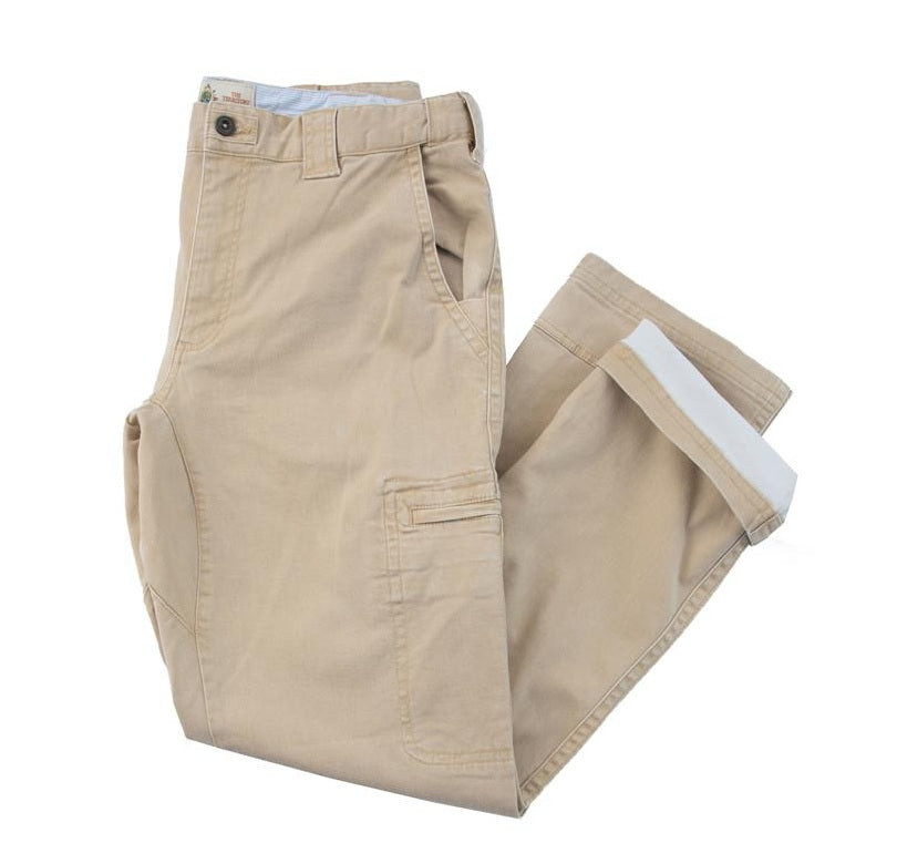 Our best-selling cargo pant, made in a midweight, all season cotton twill fabric with a touch of spandex for stretch. This is our top of the line, we put in all the bells and whistles. Eight pockets, six with zippers. The waistband (where you’ll feel the magic) is constructed with hidden elastic stretch tabs at the sides for days when you need a little more give. Gusseted crotch for greater ease of movement. Zip fly. Classic fit. Machine wash. Imported.