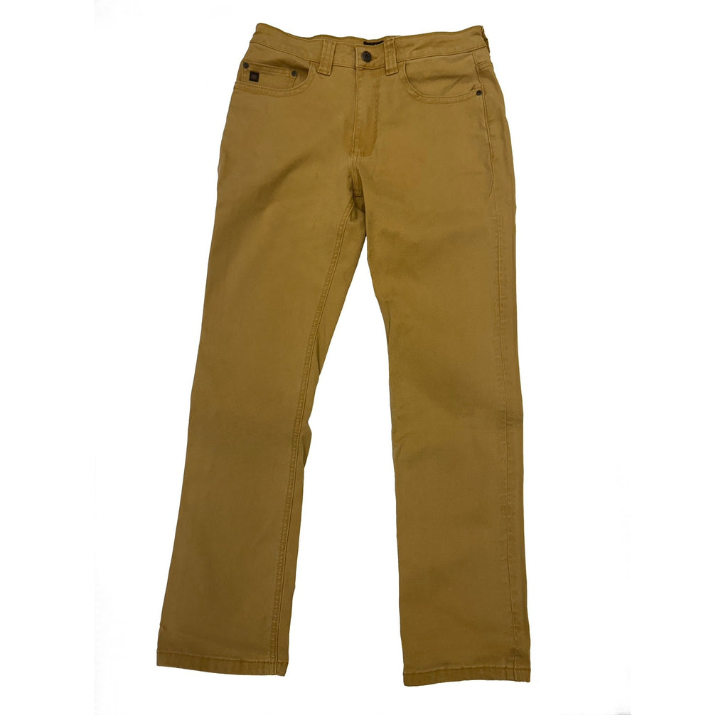 A sturdy, reliable offering using our signature stretch cotton twill (the same fabric as our Mission Comfort chino) line, this classic five-pocket style should be in any outdoorsman’s wardrobe. It has a standard waist, but one with enough natural stretch to make tasks like chopping wood and fixing fence posts comfortable, and there is enough fabric weight here to weather most scrapes and scratches. It works hard, but is also designed to look great with a plaid shirt. Classic fit. 100% cotton. Machine wash. Imported.